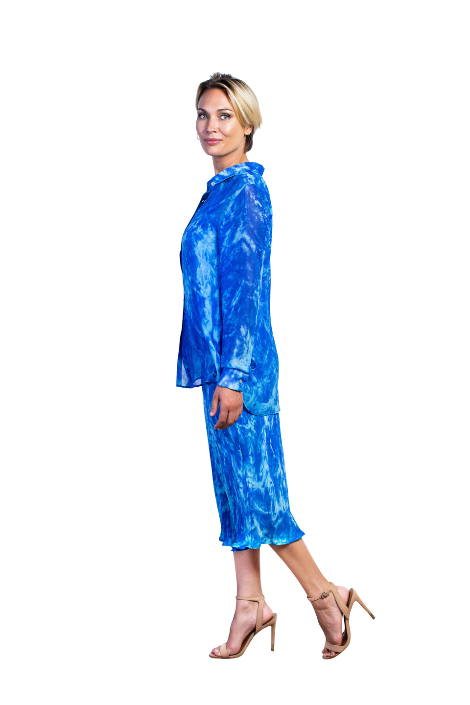 Wearable art in silk with color variation as a result of our hand technique of dyeing that ensure that each piece is unique.